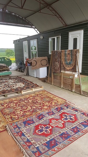 - Beating and dusting the rug using specialist equipment.